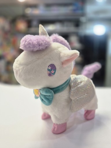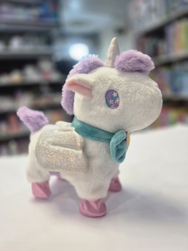 این مدل مجهز به موزیک داخلی و قابلیت راه رفتن یا حرکت با قلاده است؛ یعنی کودک میتواند مانند حیوان خانگی، اسب تکشاخ خود را با بند مخصوص هدایت کند و از شنیدن آهنگهای شاد آن لذت ببرد.